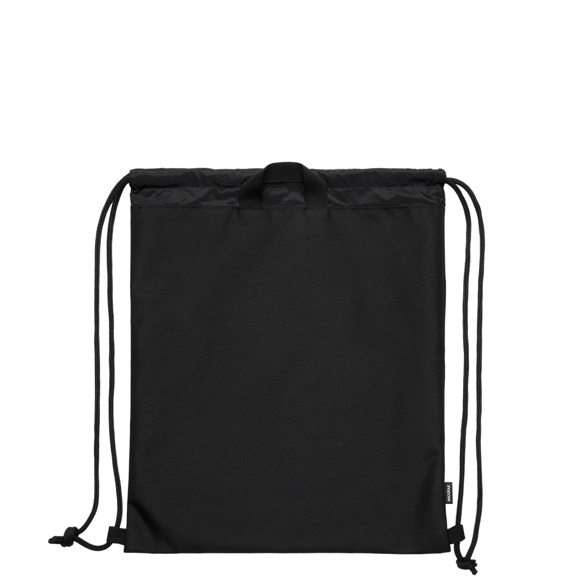 Large main compartment, double drawcord to close, cords used for shoulder straps, hang loop at back, internal zip pocket, YKK zip, black metal snap to close, elastic cord to secure once folded