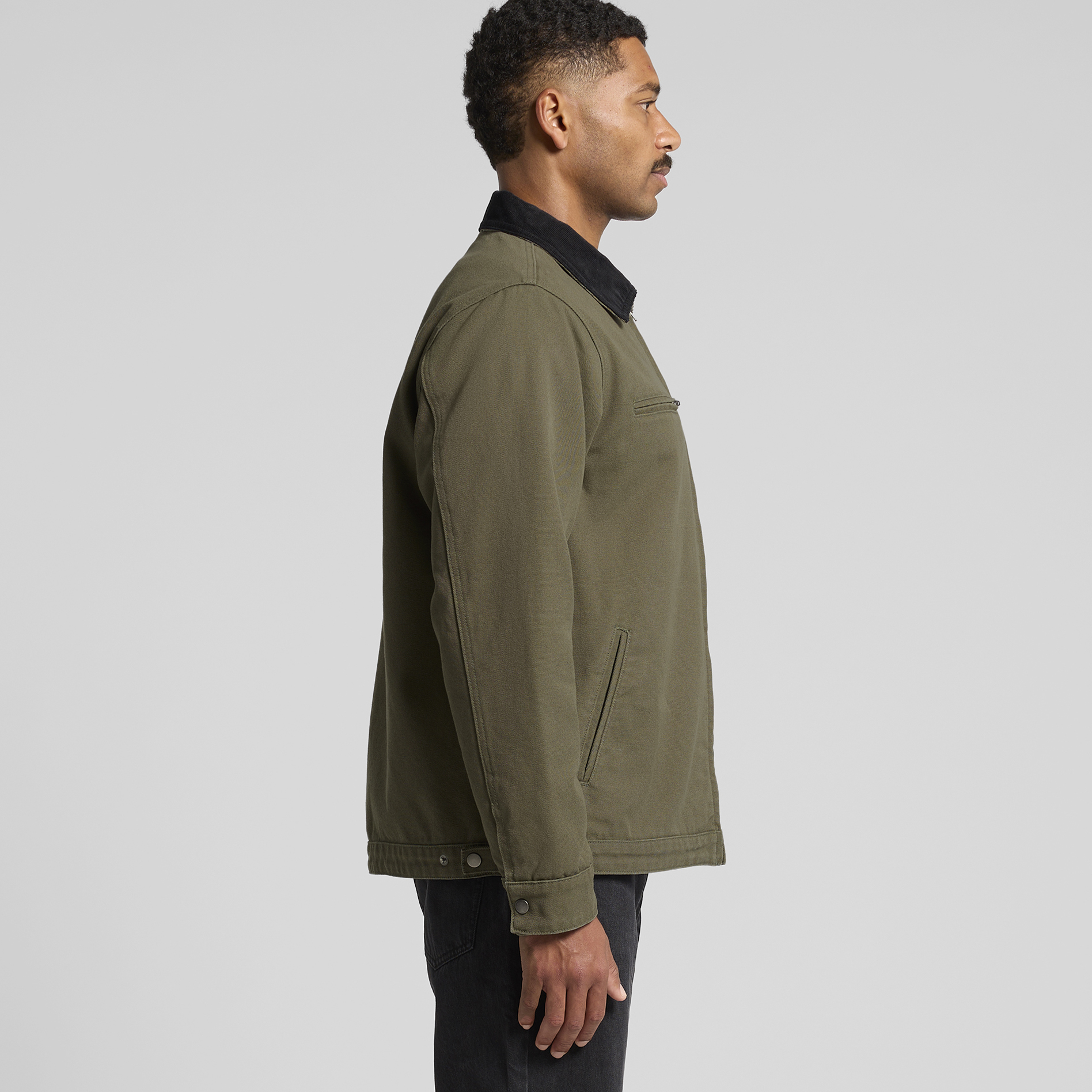 Fabric: Heavy weight, 470 GSM, 100% cotton duck canvas, polyester blanket lining for body, recycled polyester padded sleeve lining, 16 wale contrast corduroy collar facing
