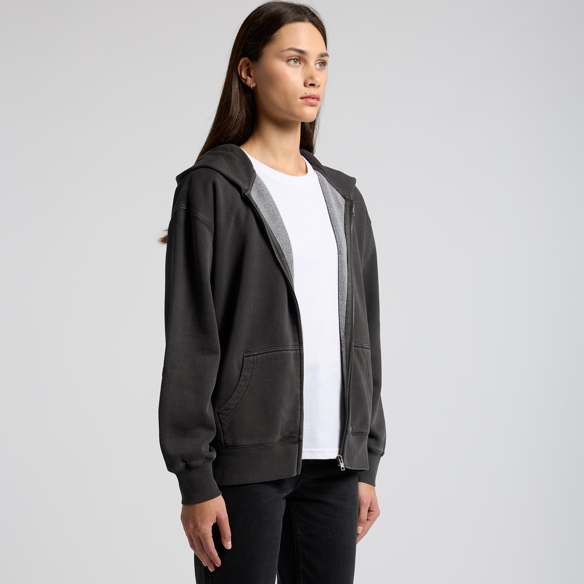 Construction: Garment dyed, zip hood, drop shoulder, kangaroo pocket, self-fabric lined hood, no drawcord, SBS two-way zip, sleeve cuff ribbing, CVC fleece, preshrunk to minimise shrinka